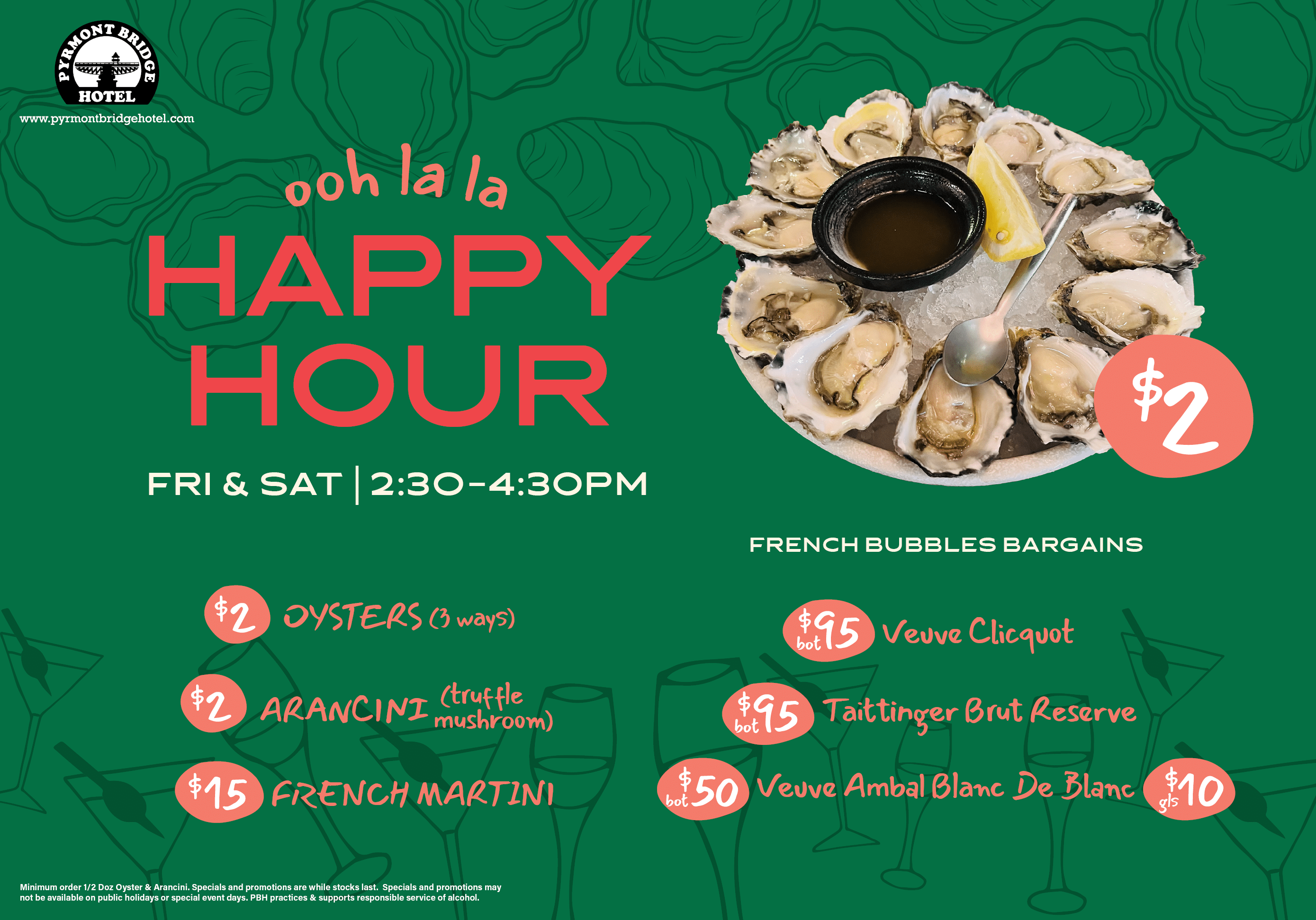 Specials/promos may not be available for private events/functions or on public holidays/special event days