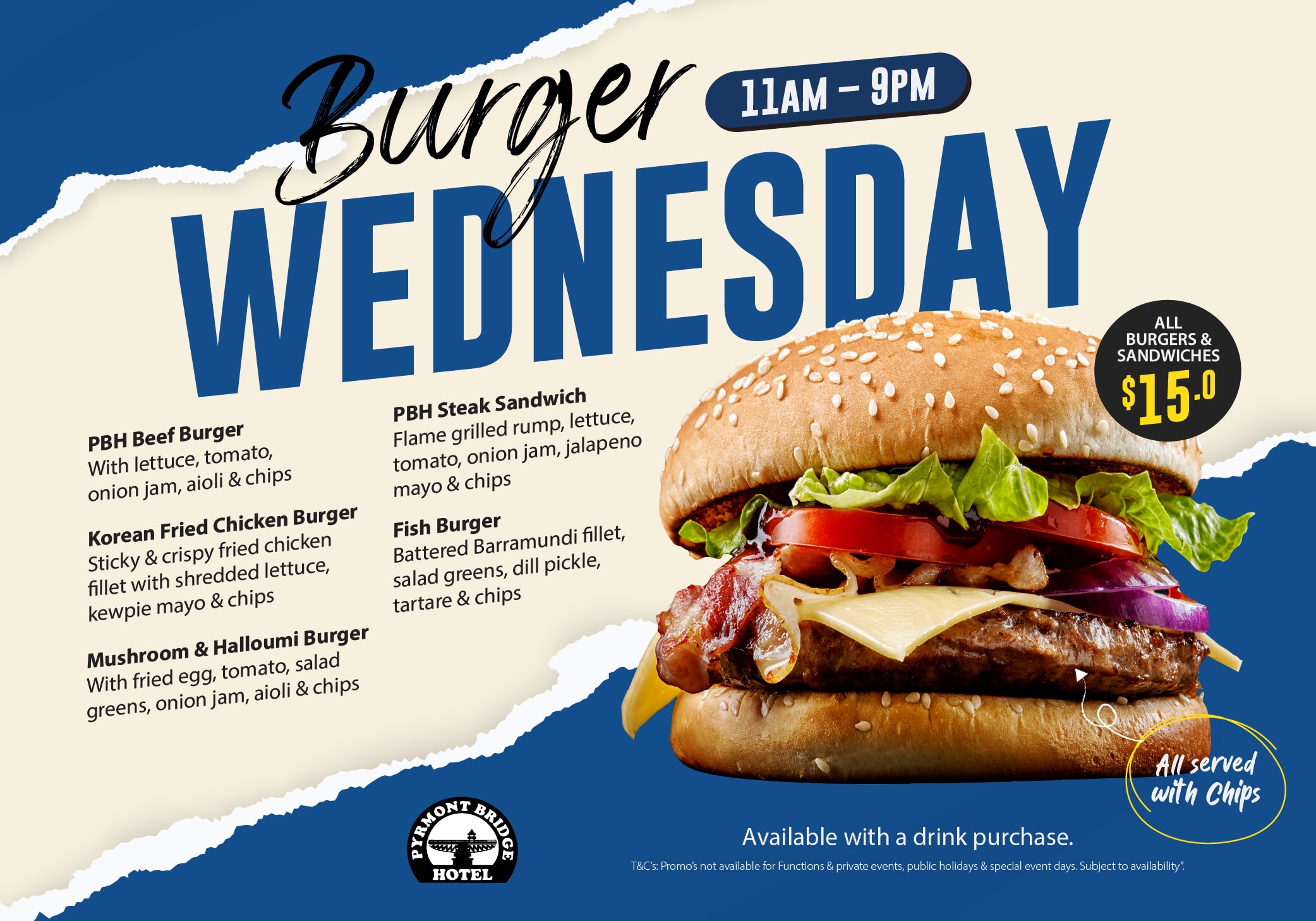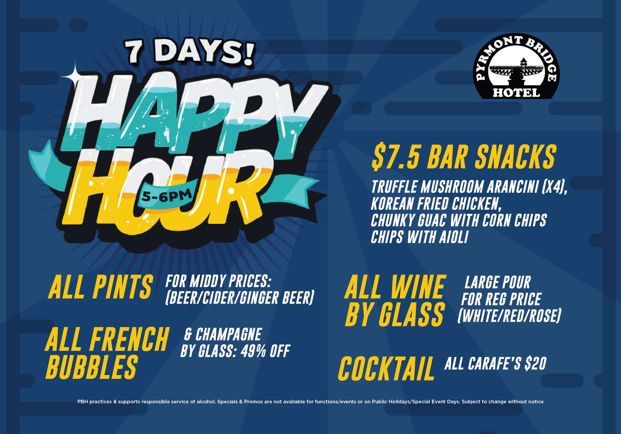 Specials/promos may not be available for private events/functions or on public holidays/special event days